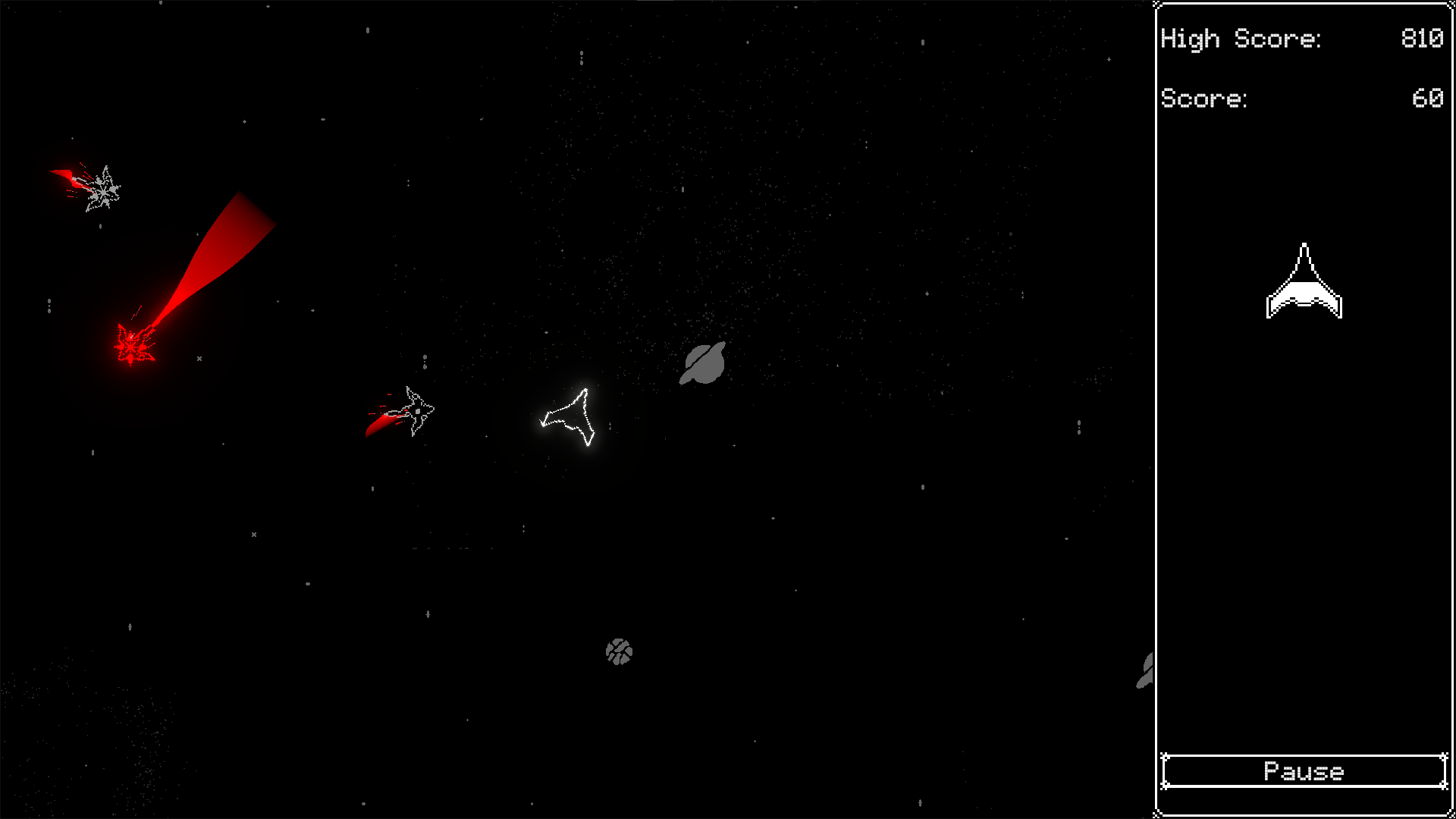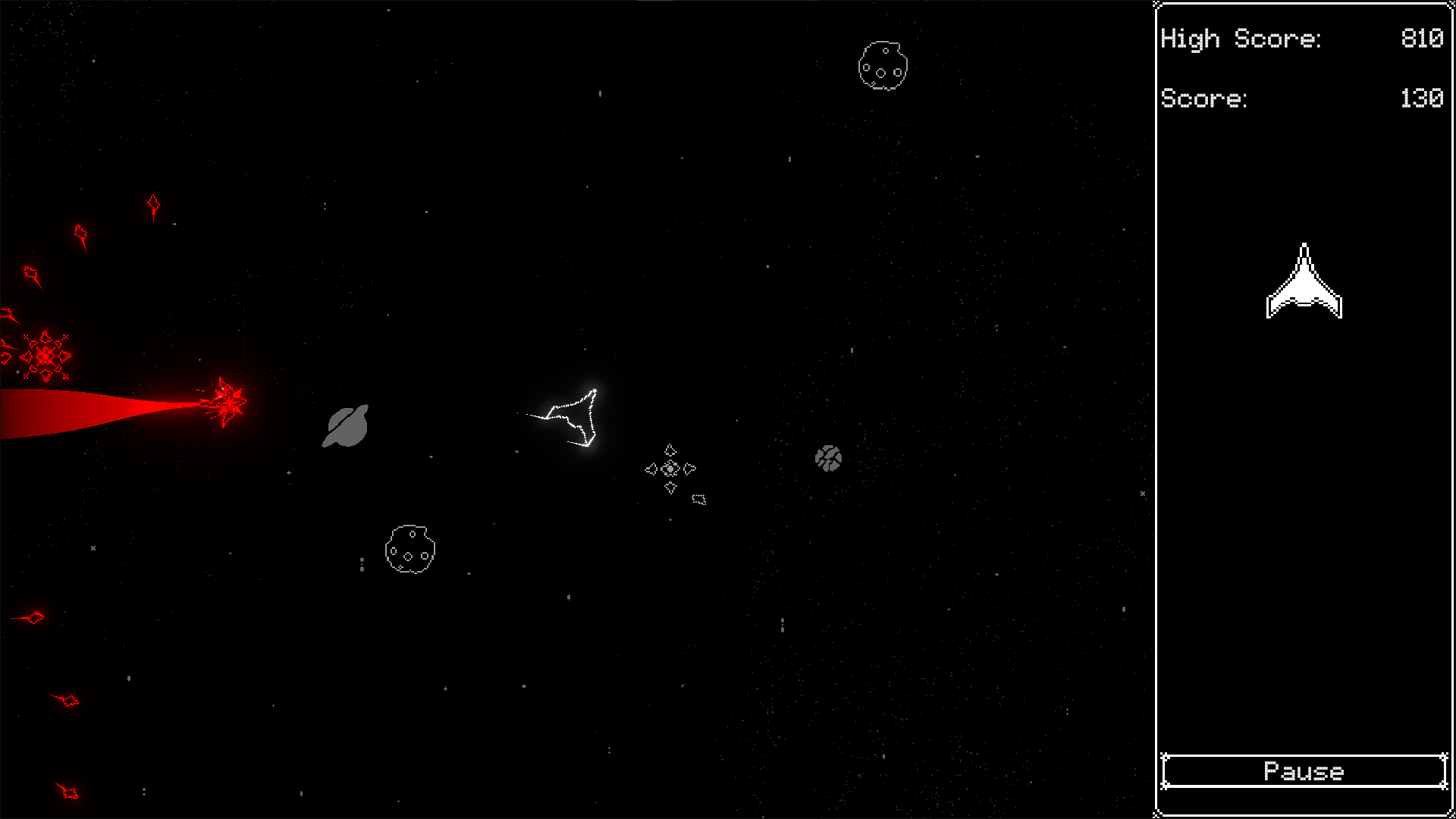 Hello everybody, this is a small clone of the 1979 game "Asteroids" with some additional enemies. I wanted to make a small, polished project, from start to finish for practice, hope you enjoy and have fun!